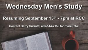Men’s Wednesday Night Study continuing on September 13th – more details to come.