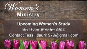 New Women’s Ministry Study: May 14th – June 25th, 6:45pm at RCC – Ladies -you are invited to the upcoming Bible Study on Relational Wisdom – Wednesday nights at 6:45pm. beginning May 14th – please signup by May 7th so the curriculum can be ordered. “This study is a great opportunity to focus on Relational Wisdom- which could be…