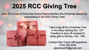 Read MoreMeridian Winter Lights Parade. Friday, December 5th, 6:30pm – the Annual Winter Lights Parade & Christmas Tree Lighting – RCC will once again have a booth set up where free hot chocolate will be given out. Volunteers are needed to set-up, decorate, and operate the hot chocolate booth. Signup sheets will be available on the…